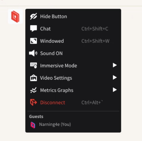 作为访问方,软件会生成一个连接受访主机的窗口,这个窗口其中左上方会有一个parsec图标,点击它可以对连接做出各种设定。在这里可以控制声音的开关、窗口的全屏与否、视频的编码模式、退出观看……这些功能。