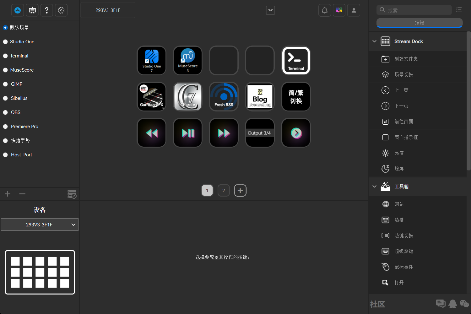 甚至我会在常用的混音软件和制谱软件当中为其设计宏处理,然后将Stream deck的按键绑定至宏,然后就可以完成:一键处理多个任务。如果你是计算机工作者,譬如:剪辑师、后端设计师、软件开发者 ……那么这个小工具一定能够提升你的工作效率。